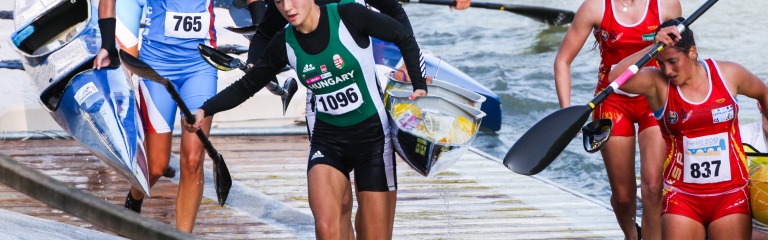 Canoe Marathon would traditionally have seen competitors race from one point to another across possible combinations of river, lake, estuary and sea while having to navigate around any obstacles, having to carry the boat at times if necessary. This format has developed to encourage a more spectator-friendly approach to the discipline with courses created to be covered in laps with a number of portages (artificial or real). The 2015 World Championships in Györ, Hungary, consisted of six to eight laps with up to seven portages (22.2km to 30km) depending on the class of event.