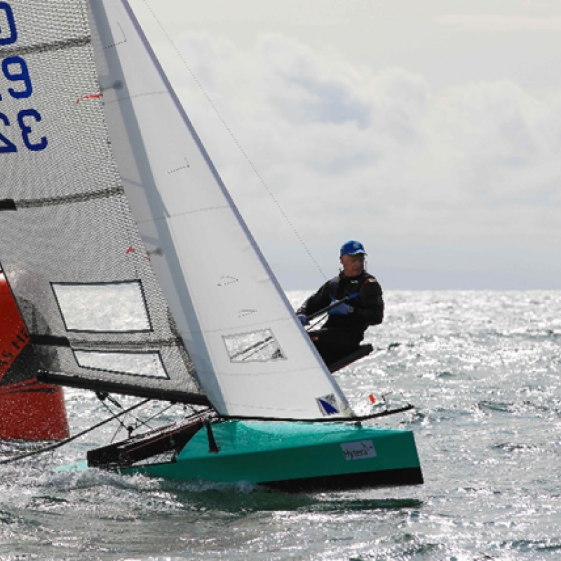 The boats are designed within a box rule with a maximum length of 5.2m, a minimum width of 0.75m, 10 sq m maximum sail area, minimum total sailing weight of 50kg and the distinctive sliding seat that allows the sailor to use their weight over 2m from the centreline to counteract the force of the wind. Whilst challenging to sail, their narrow, easily driven hull also makes them one of the one of the fastest and most rewarding sailing craft.